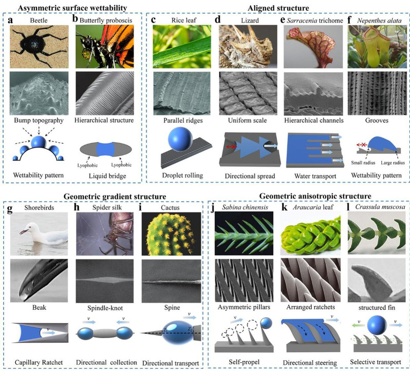 Технология бионической структурированной микрофлюидики основана на моделировании уникальных поверхностных структур природных объектов (например, листьев араукарии) и сочетании градиентов смачиваемости поверхности с внешними энергетическими полями (световым, тепловым, электрическим, магнитным и акустическим). Это позволяет создавать микрофлюидные интерфейсные системы, обладающие способностью к направленной транспортировке, адаптивному реагированию и выполнению многофункциональных задач.