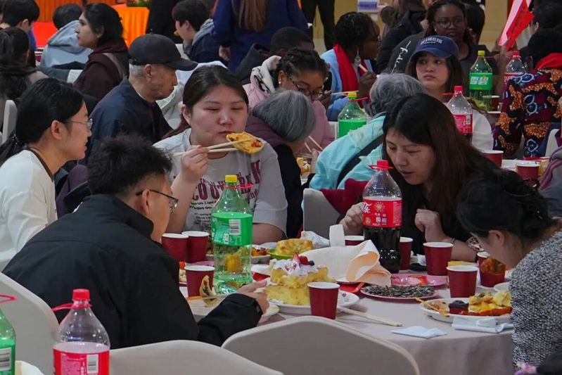 Специально для праздничного ужина университет подготовил 106 изысканных блюд и многоярусный торт, символизирующий воссоединение и счастье. Столь богатый выбор позволил студентам, приехавшим со всех уголков страны и оставшимся в кампусе, по-настоящему почувствовать вкус родного дома. Программу вечера дополнили яркие выступления китайских и иностранных учащихся, которые вместе декламировали стихи и пели хором.