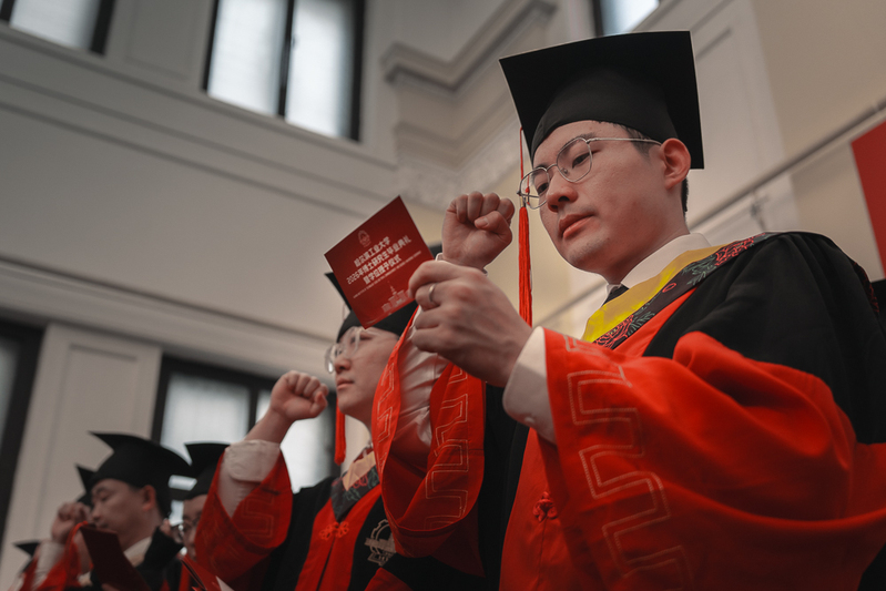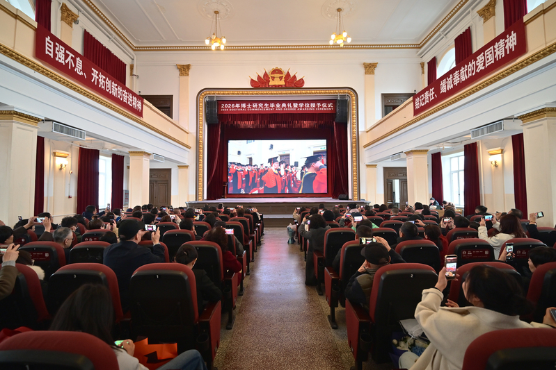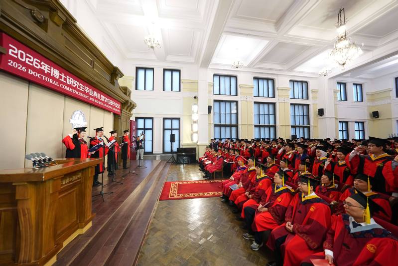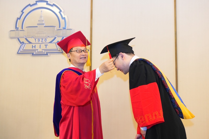 3 апреля в Харбинском политехническом университете (ХПУ) состоялась торжественная церемония выпуска и присуждения учёных степеней выпускникам докторантуры 2026 года. На мероприятии присутствовали секретарь парткома ХПУ Чэнь Цзе и ректор университета Хань Цзецай. Они вручили докторантам памятные свидетельства о присуждении степени, поправили кисточки на академических шапочках выпускников и сделали совместные фотографии.